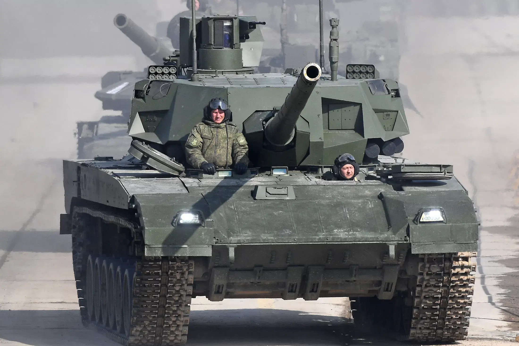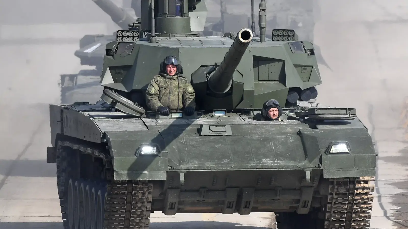 Т-14 «Армата» — российский основной боевой танк с необитаемой башней. За счет кардинального снижения видимости Т-14 в инфракрасном, магнитном и радиодиапазоне его называют еще стелс-танком. В оснащение входит система динамической защиты четвёртого поколения «Малахит». Поначалу танк оснащали 125-миллиметровой пушкой, но позже появились данные о модернизации – установке пушки калибра 152 мм.