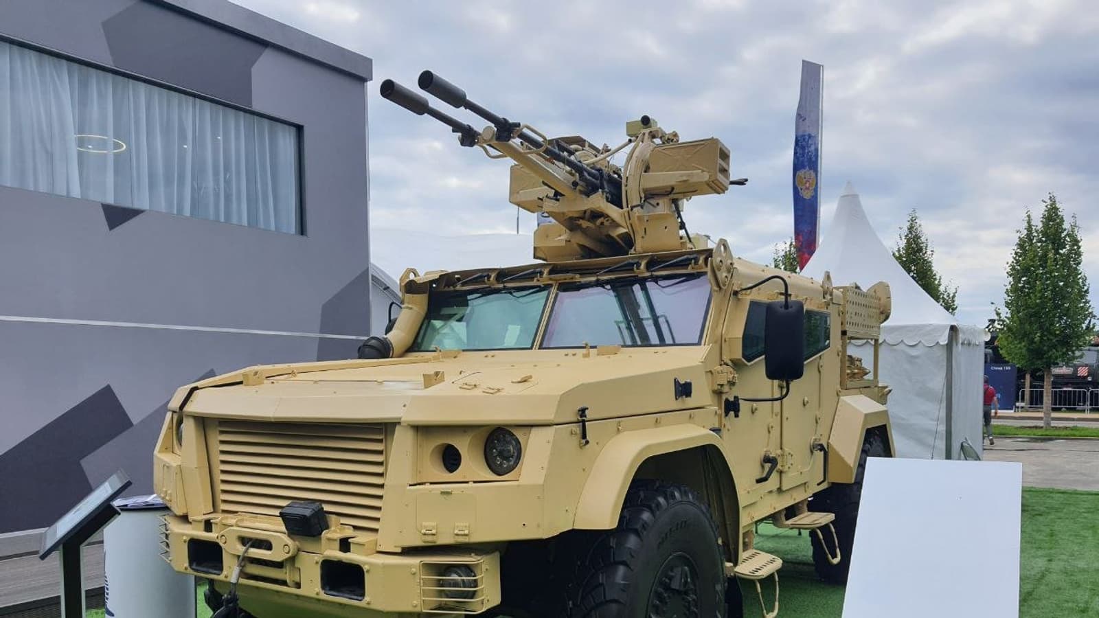 У российского бронеавтомобиля «Тайфун» есть множество вариантов: для ВДВ, для спецназа, минный заградитель, машина для транспортировки расчетов переносных зенитных ракетных комплексов, машина, несущая на себе 82-мм миномет 2С41 «Дрок». И не надо забывать про основной вариант с 30-мм орудием 2А42 и 7,62-мм пулеметом 6П7К в необитаемом боевом модуле. А сейчас появилось еще одно исполнение: «Тайфун» оснастили зенитной установкой ЗУ-23/30М1.