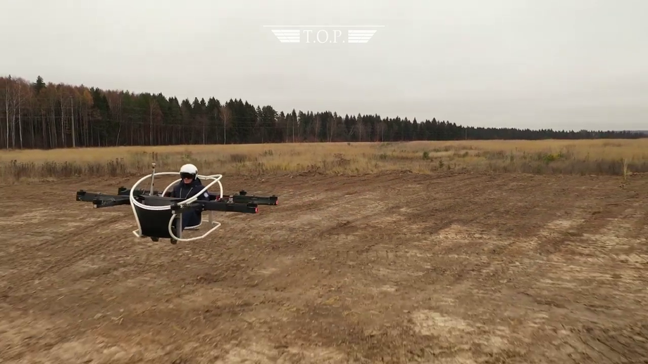 Устройство - универсальная летающая грузовая платформа «Т.О.Р.». Так как это лишь прототип, параметры не впечатляющие: 10 минут полета при массе полезной нагрузки 85 кг (то есть с одним человеком).