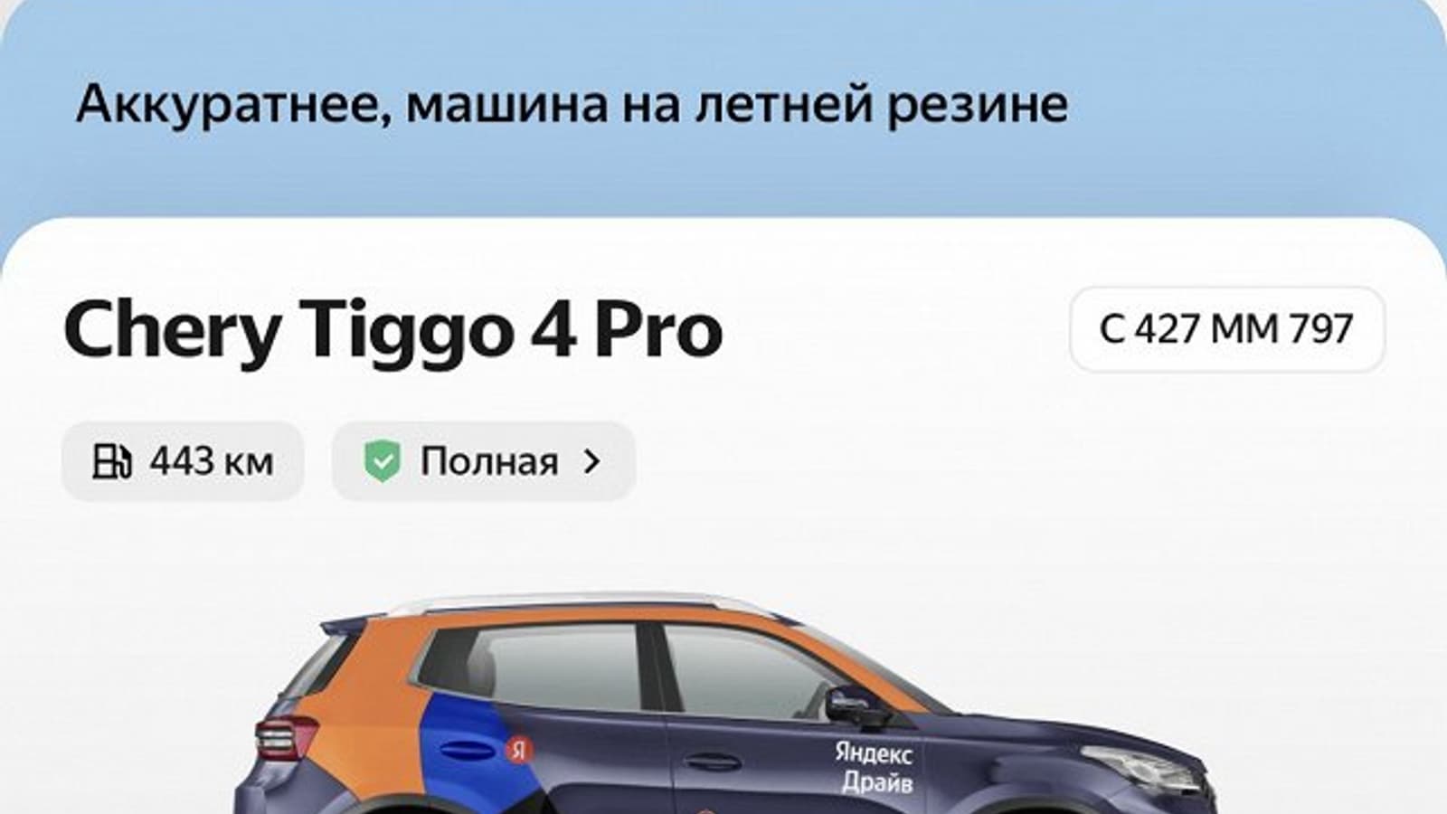 Так, «Яндекс Драйв» сообщает в приложении клиентам, что пока ездит на летней резине.