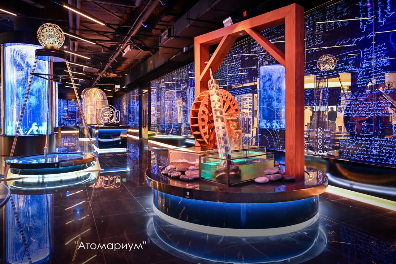 Подземные павильоны показывают становление атомной науки советского периода, поднимаясь вверх, можно увидеть ее развитие.