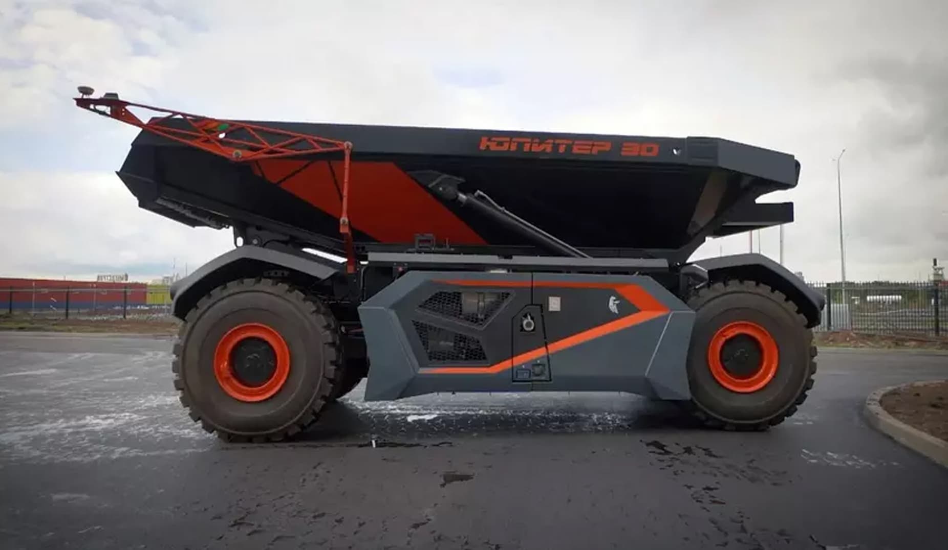 Этот бескабинный самосвал способен перевозить грузы объемом до 30 тонн в полностью автоматическом либо в дистанционном режиме управления.
