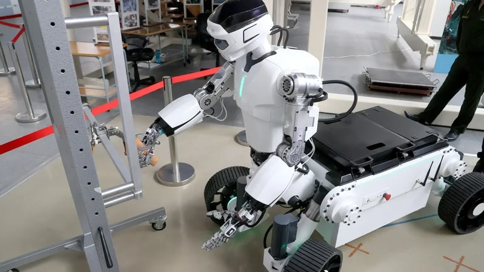 Специалисты НПО «Андроидная техника» (Магнитогорск) при поддержке кросс-отраслевого фонда Alpha Robotics Venture представили робота-кентавра на выставочной площадке конференции «Пилотируемые полеты в космос» в Звездном городке в Московской области.
