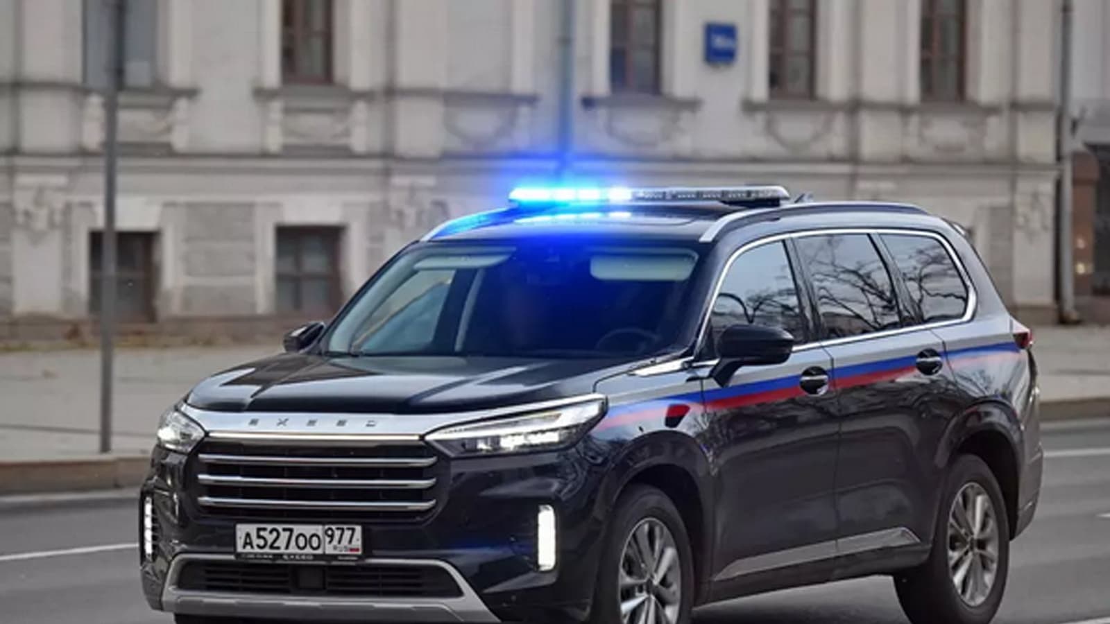 В Сети появилась фотография китайского внедорожника премиум-класса Exeed VX с цветографической схемой ФСБ и красно-синими спецсигналами.