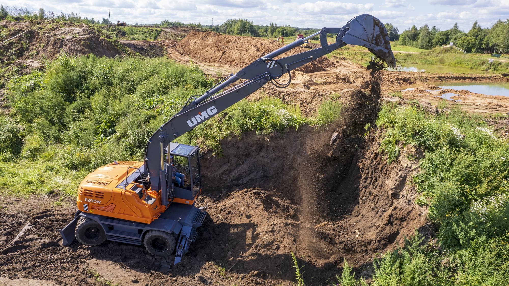 Российская UMG из «Промышленных инвестиций» показала в Твери работу своего нового колесного экскаватора E200W.