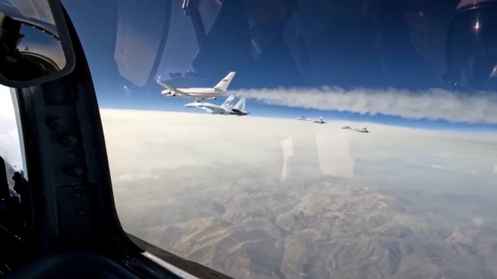 Подобное сопровождение президентского самолета - событие редкое в истории авиации. Су-35 совершили перелет без дозаправки и имели при себе штатный арсенал оружия.