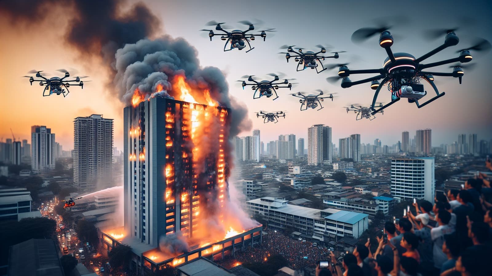 ● «Циклон» – дрон с аварийным молотком для разбития окон и пожарным рукавом для тушения огня;