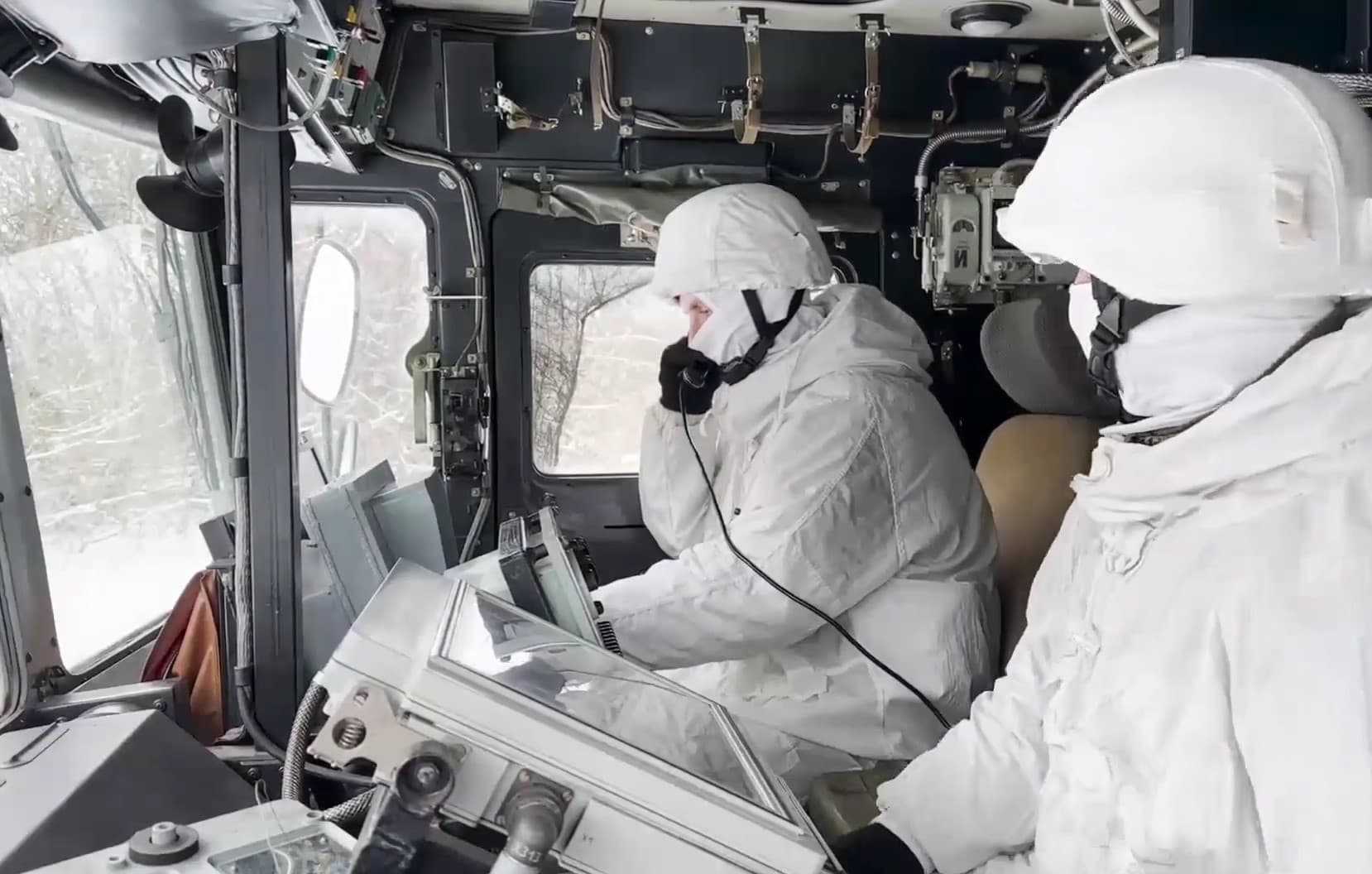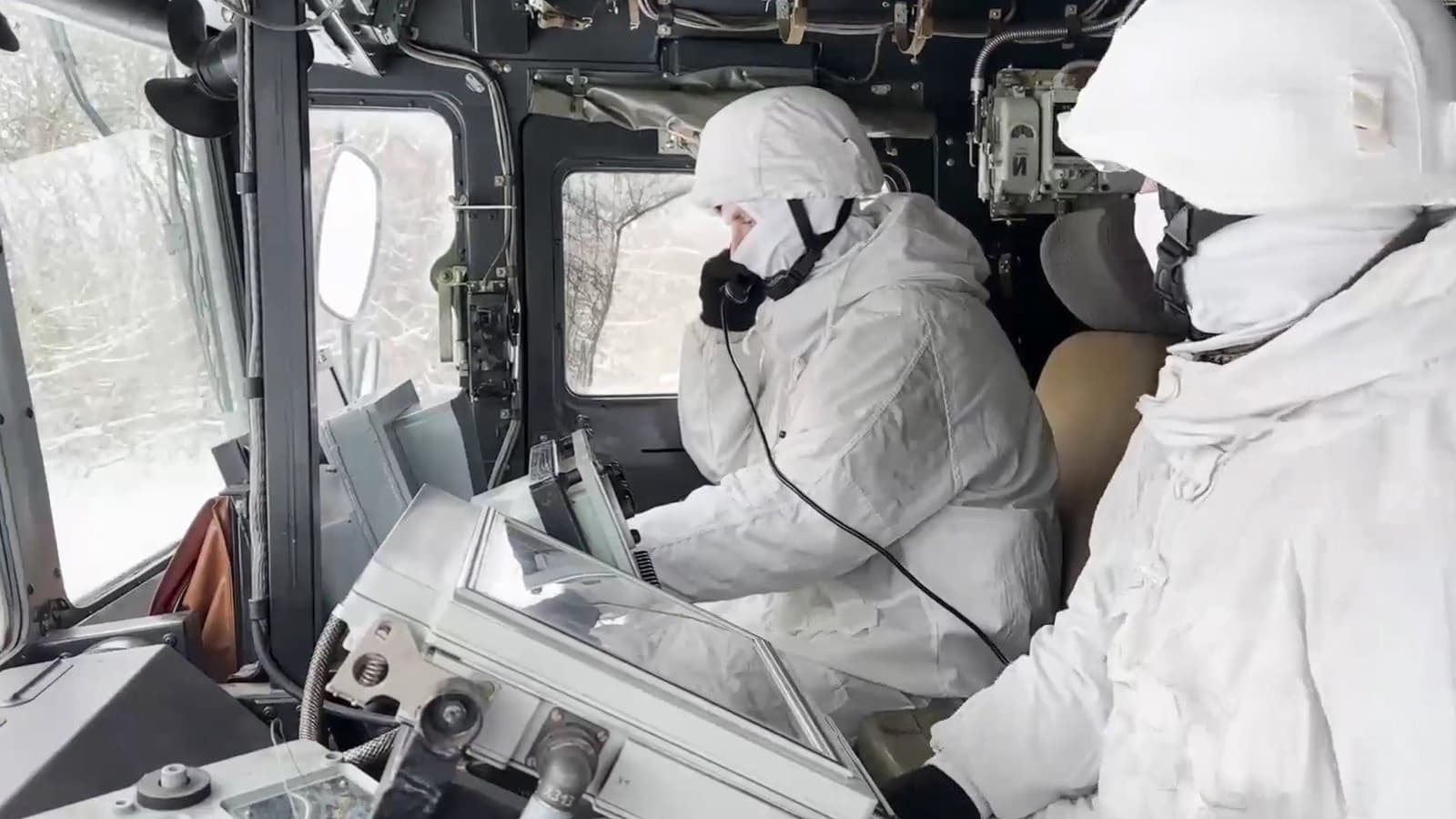 ОТРК с тремя военнослужащими в маскировочной форме прибыл на позицию. После развертывания комплекса была получена задача на запуск ракеты.