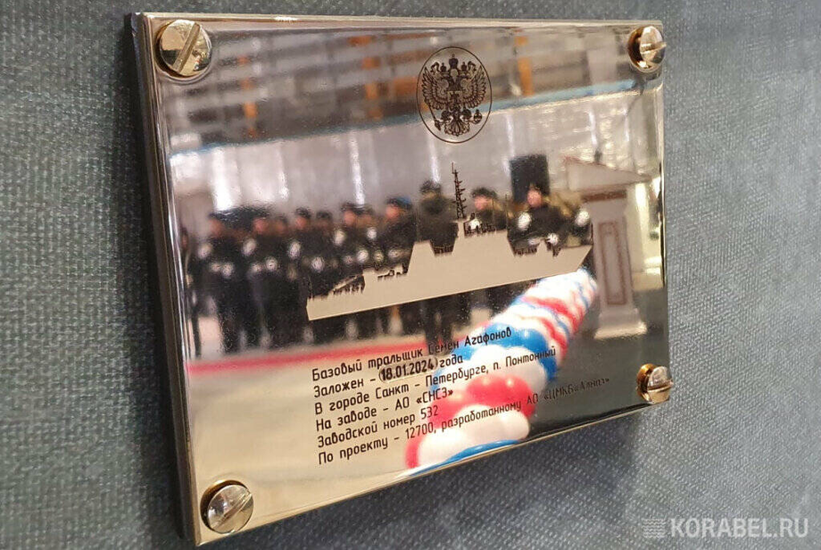 По приказу Главкома Военно-морского флота России, новый морской тральщик получил имя Героя Советского Союза Семёна Агафонова. Семён Михайлович Агафонов прошёл через Великую Отечественную и Советско-японскую войны, в составе особого разведывательного отряда Северного флота и отдельного разведотряда особого назначения Тихоокеанского флота.