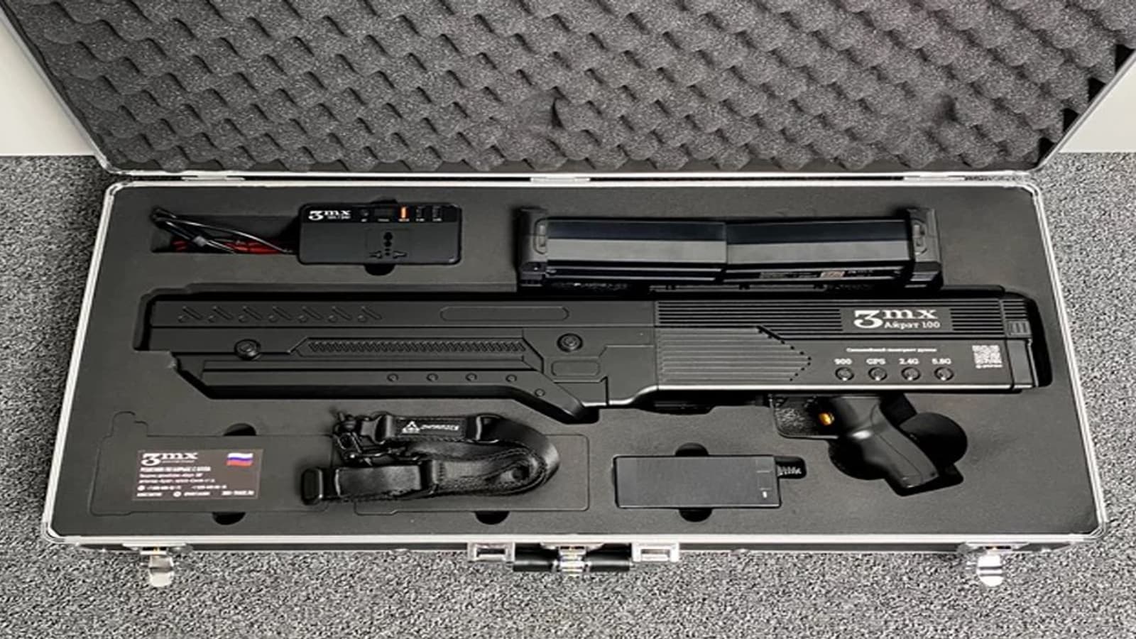 Это противодронное ружье на пять радиочастот, которое может одновременно подавлять сигнал на всех выбранных каналах связи. Дальность действия «Гарпии» простирается до 2 километров, а литий-ионная аккумуляторная батарея может работать максимум 40-60 минут.