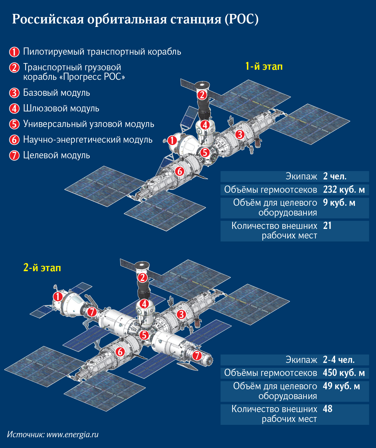 Новая Российская орбитальная станция (РОС) станет ступенькой для освоения дальнего космоса. Её не будут использовать как перевалочную базу для полетов, но здесь отработают технологии для полетов на Луну и Марс. Об этом заявил главный конструктор РОС Владимир Кожевников.