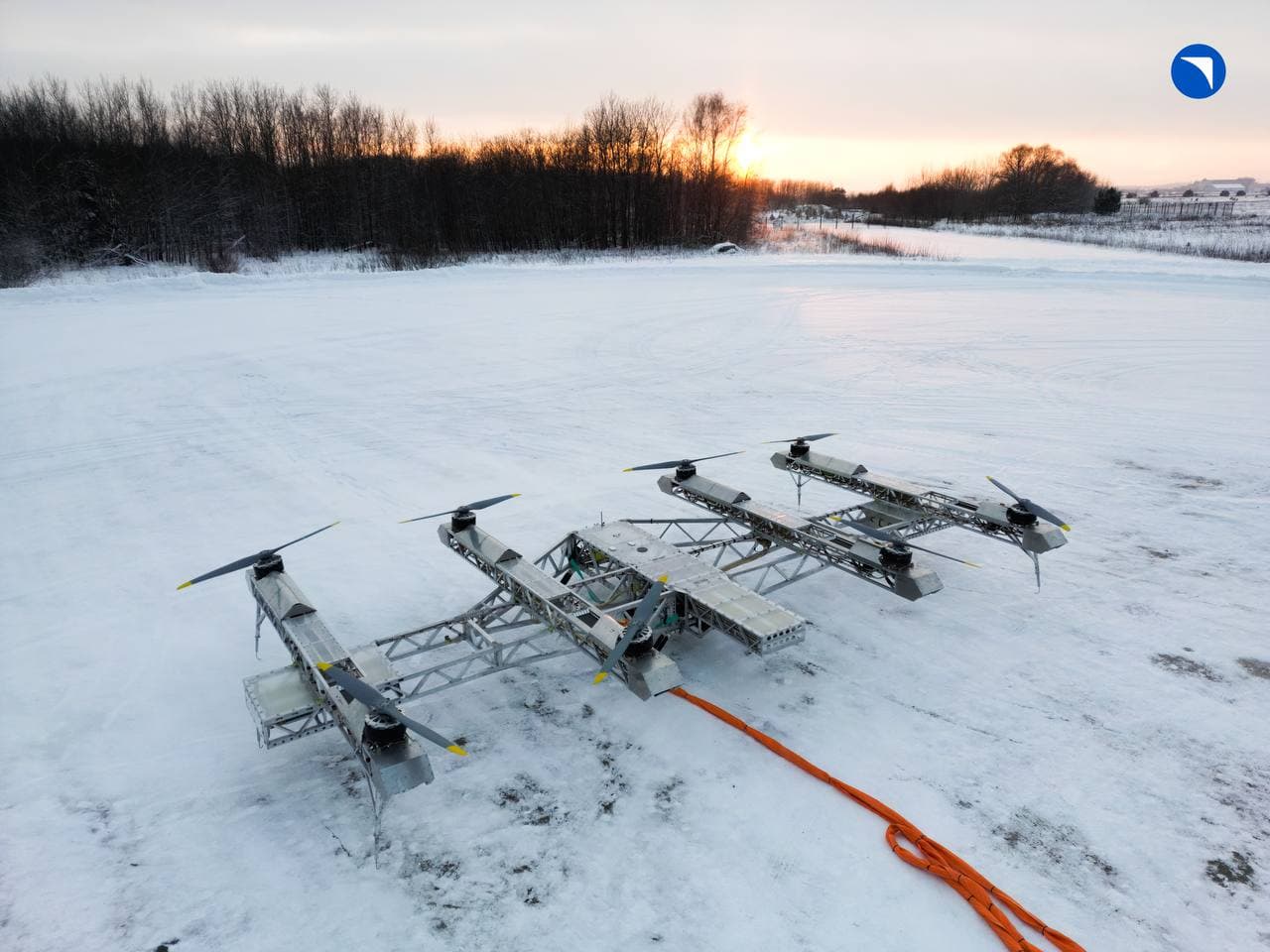 Размеры дрона не указываются, но на видео, которым поделились в ОАК, он выглядит гигантским. Под его балками находятся несколько человек, проверяя тросы с грузами.