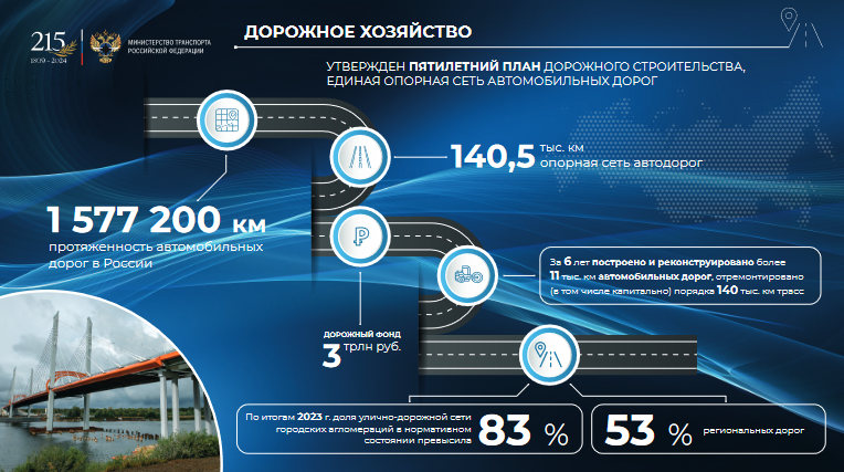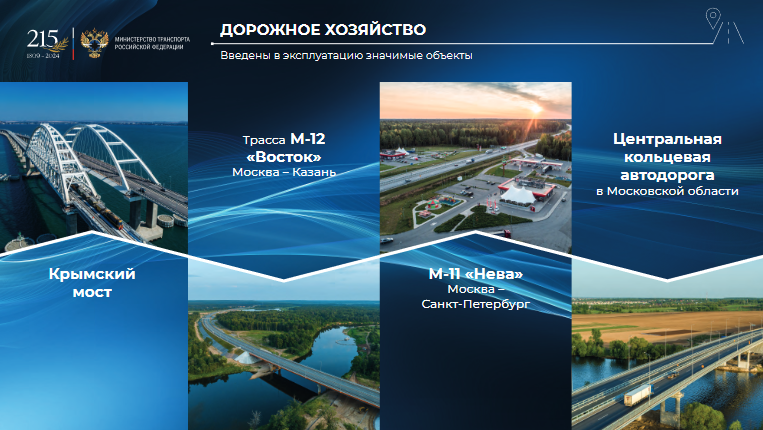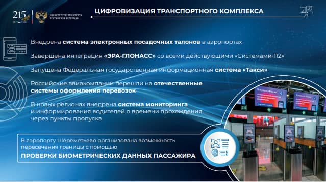 Презентация охватила не только дорожное хозяйство, мосты, железнодорожные пути, но и железнодорожный транспорт, авиационные перевозки, морской, автомобильный, городской транспорт, и их цифровизацию.