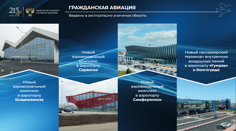 Российская авиаотрасль получила комплексную программу развития до 2030 года, Единая система организации воздушного движения в России была модернизирована, а Дальний Восток обрел единую авиакомпанию «Аврора». Кроме того, в стране появился крупнейший в Восточной Европе провайдер по техническому обслуживанию и ремонту воздушных судов «А-ТЕХНИКС».