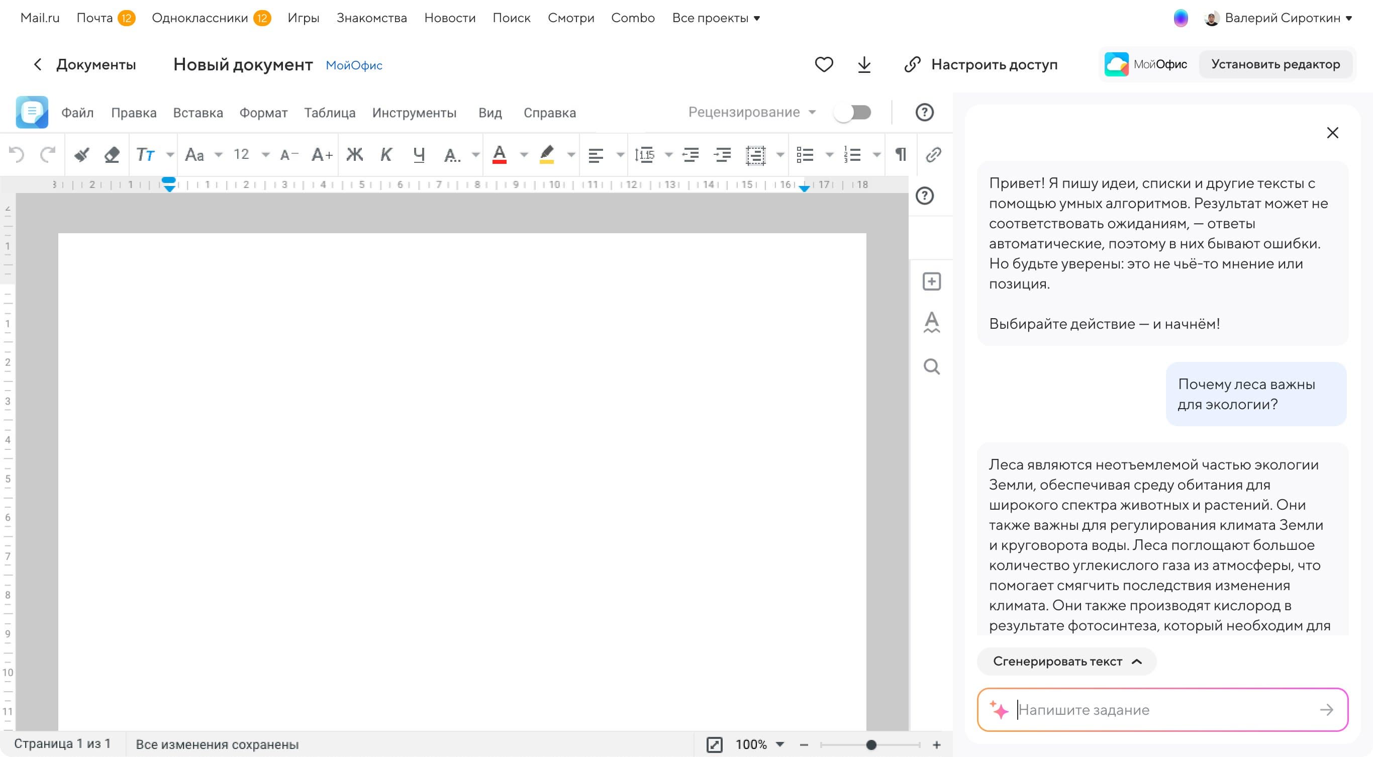 Экосистема VK взяла на службу нейросети: теперь искусственный интеллект (ИИ) помогает пользователям в «Почте», «Облаке», «Заметках» и «Календаре» Mail.ru. Он берет на себя креативные идеи и задачи, связанные с написанием текстов разного рода и с их прочтением — именно они нередко бывают самыми рутинными и утомительными для человека.