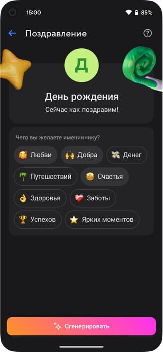 Календарь благодаря нейросети поможет пользователю придумать поздравление для родных и близких, друзей или коллег. Для этого нужно будет указать параметры того, что пользователь намерен пожелать, и немного подождать.