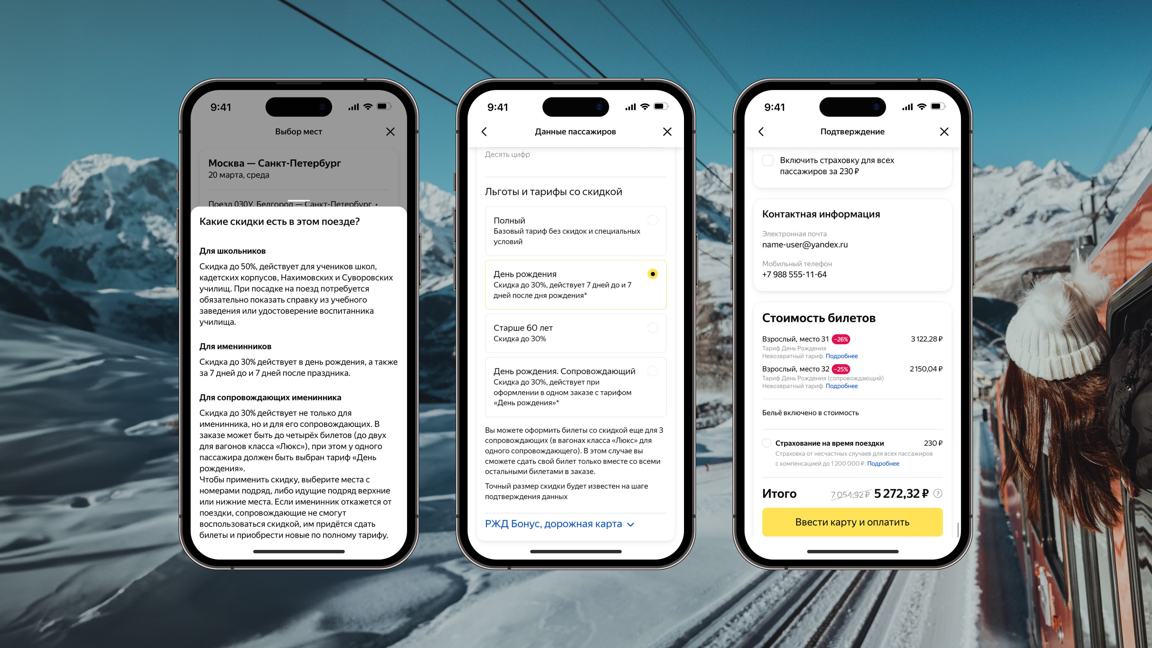 В этом обновлении нам удалось собрать вместе информацию о разных типах скидок, чтобы путешественники могли легко находить выгодные билеты. Например, мы подскажем, что в течение семи дней до и после дня рождения пользователь с друзьями может ехать со скидкой до 30%. Наши подсказки помогут сэкономить несколько тысяч рублей.