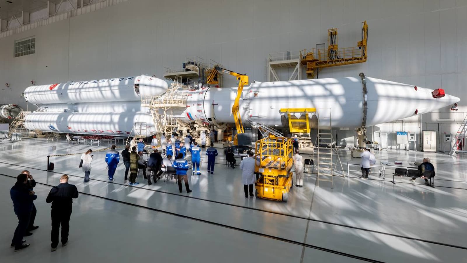 Вчера специалисты уже состыковали космическую головную часть в составе разгонного блока «Орион» и испытательной полезной нагрузки с «пакетом» из трёх ступеней ракеты-носителя «Ангара-А5».