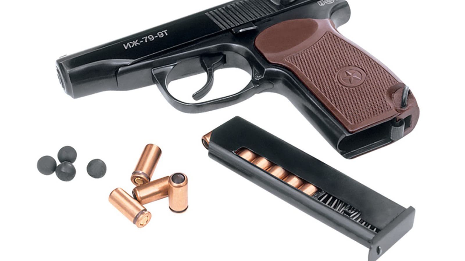 Иж-79-9Т является первым российским и самым популярным травматическим пистолетом. Поскольку он был создан Петром Ившиным с учетом конструктивного сходства с боевым пистолетом Макарова (ПМ), его прозвали «Макарыч». Как и ПМ, Иж-79-9Т получил рамку, затвор и ударно-спусковой механизм из стали, что гарантирует его точность при стрельбе и надежность в эксплуатации.