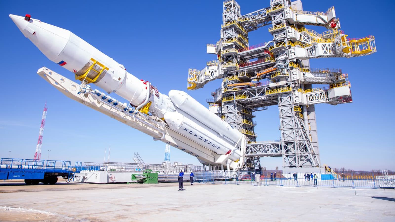 На космодроме Восточный к стартовой площадке доставлена российская тяжёлая многоразовая ракета-носитель «Ангара-А5». Это первая ракета подобного класса, которую Россия запускает с Восточного.