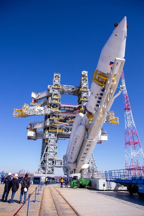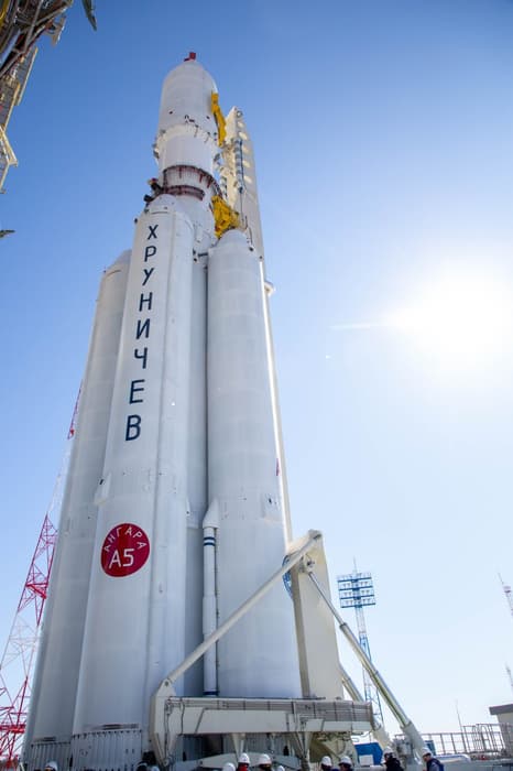 «Ангара-А5» после доставки сразу была приведена в вертикальное положение для старта. Процесс занял несколько часов.