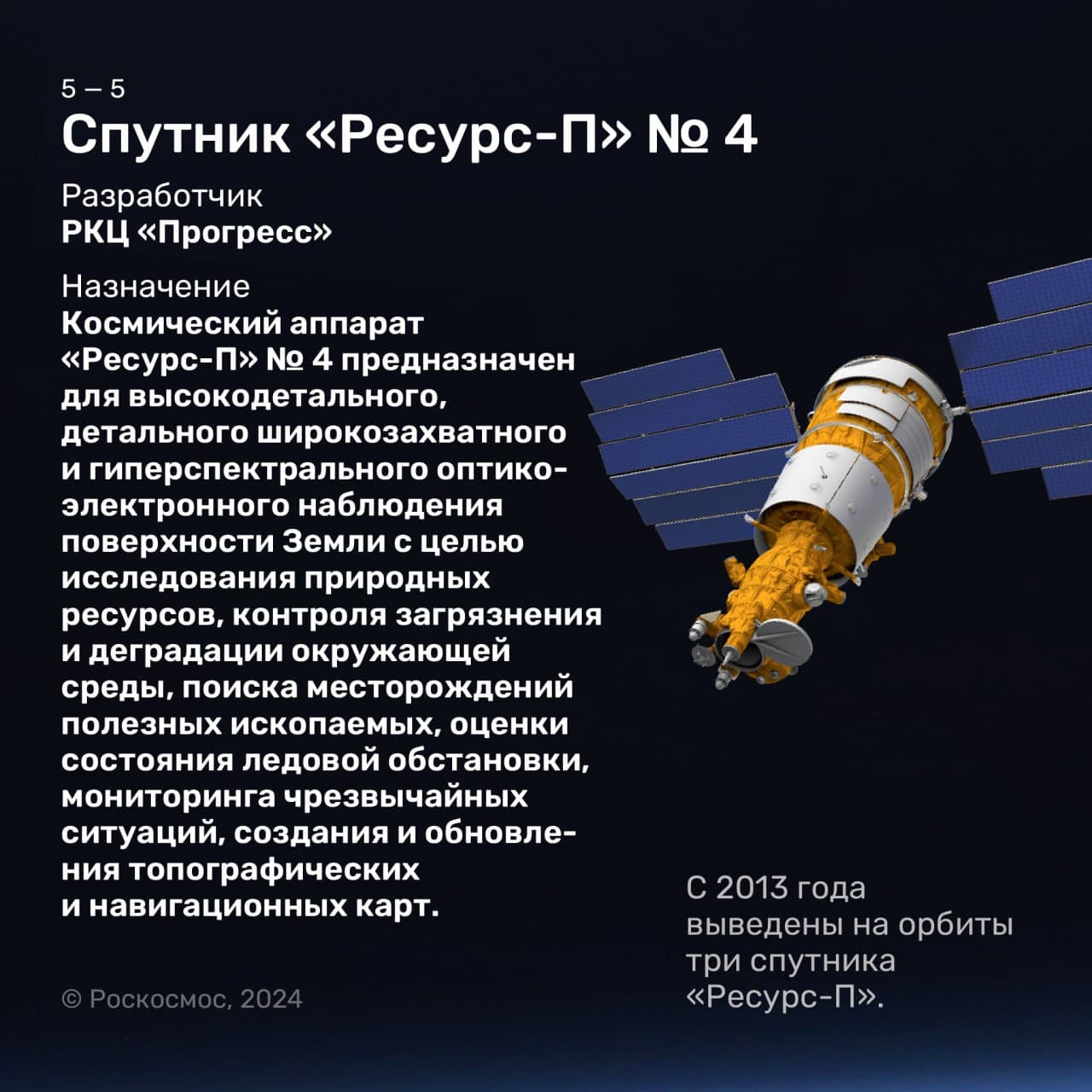 Спутник «Ресурс-П» № 4, который готовится к старту, примечателен тем, что в своей серии он предпоследний. В 2025 году вместо «Ресурсов-П» начнут запускать в космос их более совершенные версии: спутники «Ресурс-ПМ».