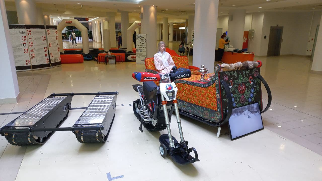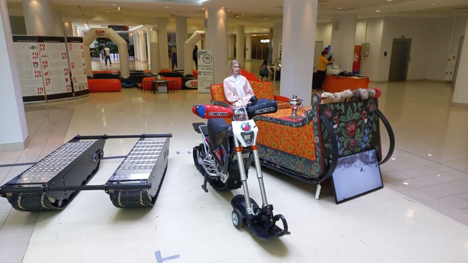 Красногорские создатели российского электросноубайка «Снегирь» привезли его на «МотоВесну» в Экспоцентре. И не только его: в экспозицию попали электросани и мобильная гусеничная электроплатформа с грузоподъёмностью 300 килограммов от этой же команды.