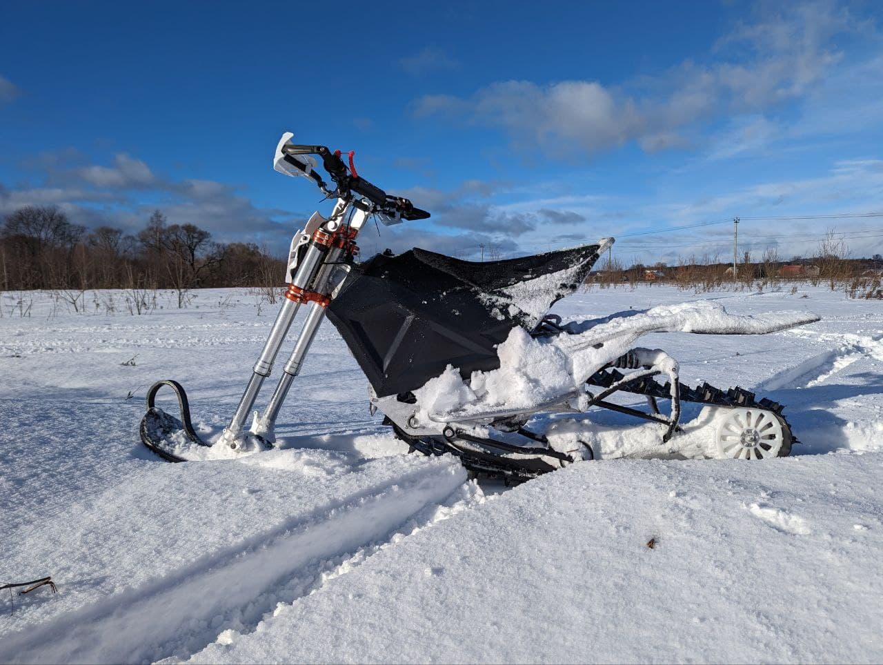 В базовой версии электросноубайк «Снегирь» способен преодолеть снеговые преграды более 60 сантиметров и по сути представляет собой электрический снегоход. Но создатели считают его электросноубайком за схожесть со спортивным мотоциклом по характеристикам и выносливости. Он может развить скорость до 64 километров в час, и везти максимальную нагрузку до 200 килограммов при собственном весе в 115 килограммов.