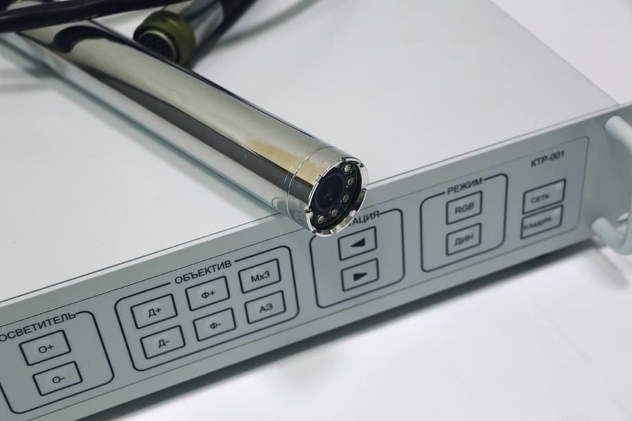• блок телевизионной системы с мембранной клавиатурой, через который управляется камера. Все контроллеры «вшиты» в панель, и это дает возможность устройству работать в реакторных залах и на иных атомных объектах.