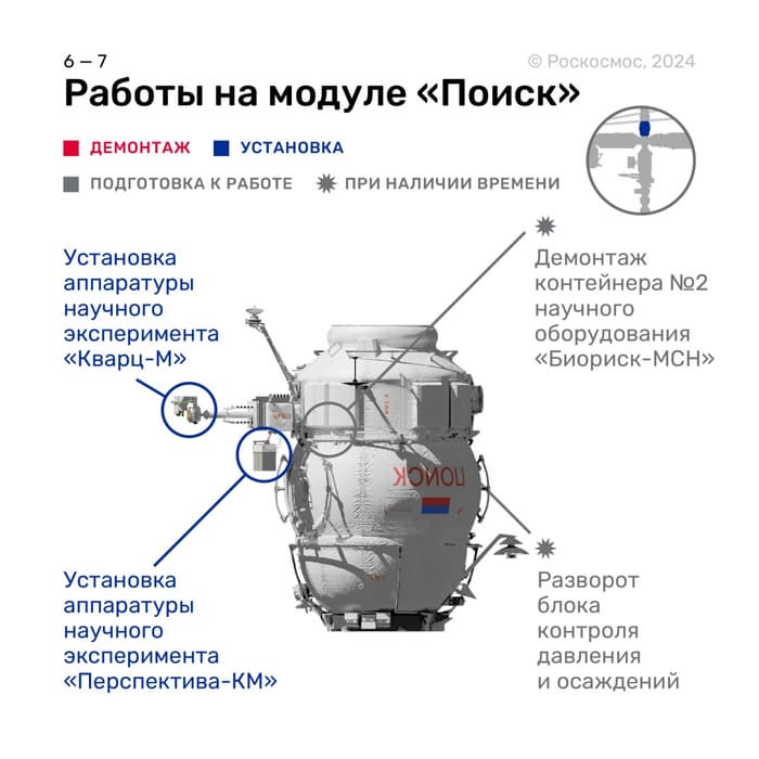 Есть дела и на модуле «Наука», который отвечает за расширение функциональных возможностей российского сегмента МКС и программы космических научных экспериментов.