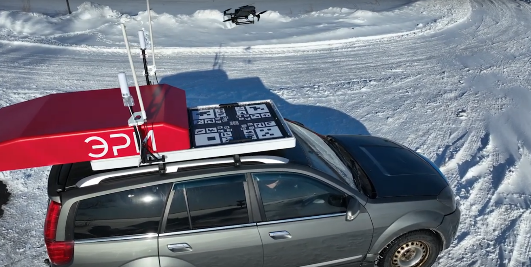 Российские разработчики из компании «Русдронопорт» создали дронопорт для автомобиля. Он состоит из посадочного стола, крыши и мачты с антеннами связи. Его можно использовать при температурах от -20 до +55 градусов.