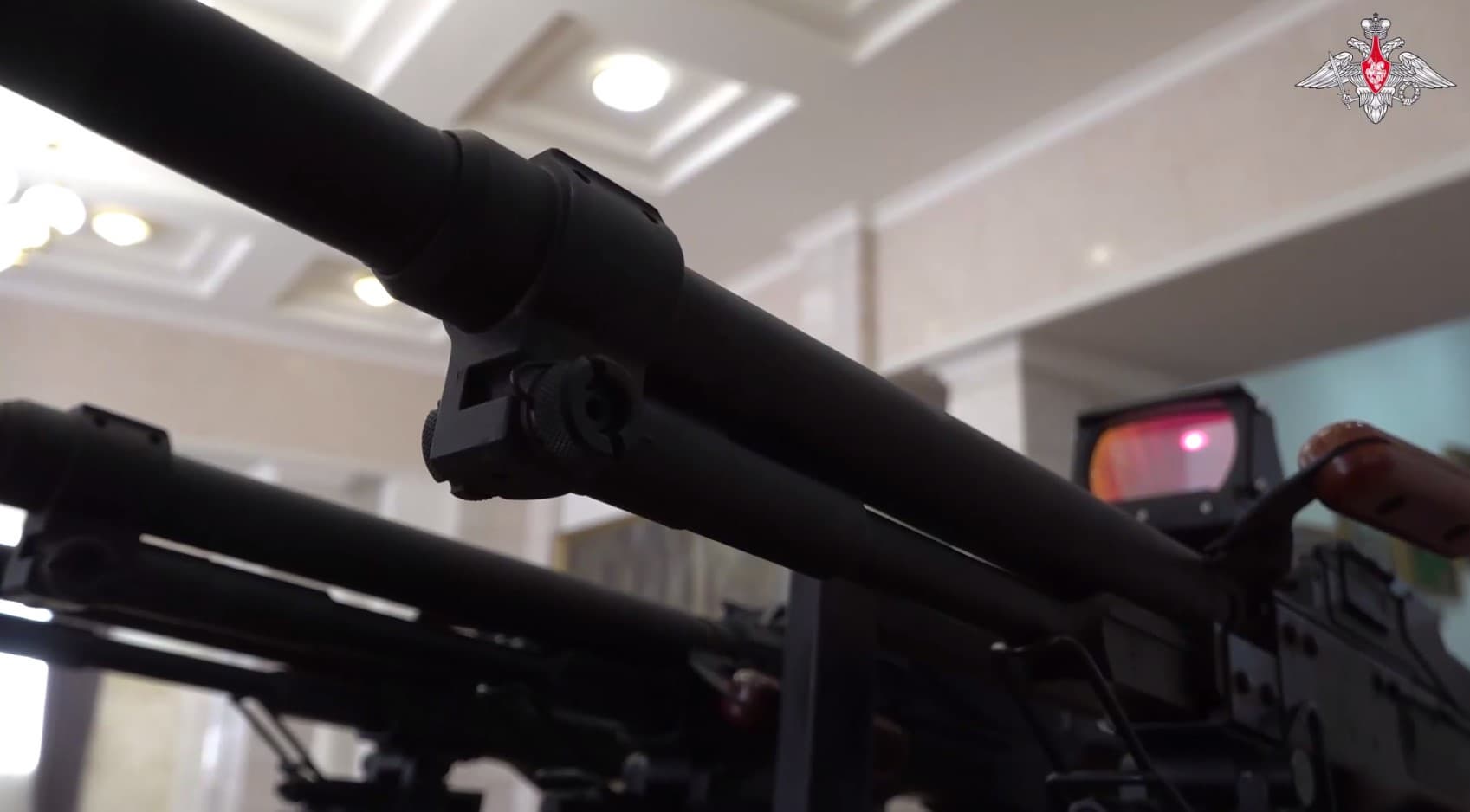 Руководитель ведомства осмотрел станковый пулемет с двумя системами подачи патронов и прицельным комплексом. Шойгу проверил габариты оружия, взявшись за его рукоятки. По его мнению, узел перемещения пулемета по горизонтальной оси оказался слишком жестким. Министр порекомендовал внести доработки.