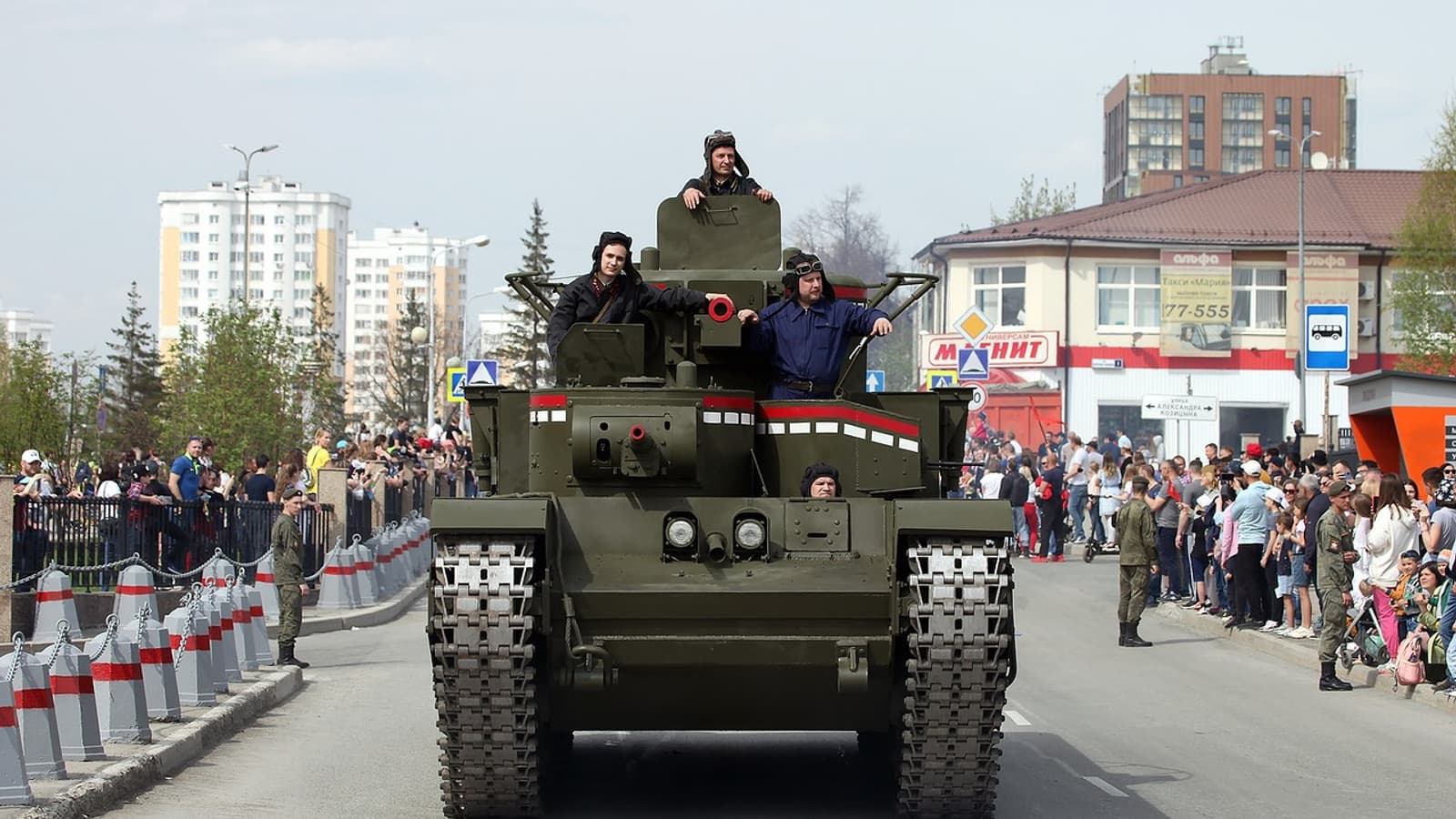 Парад победы с участием военном техники состоялся в Нижнем Тагиле. По главной улице города проехали танки Т-72Б3, Т-90М «Прорыв» и «ветеран» Т-35-85. Все бронемашины были изготовлены на «Уралвагонзаводе».