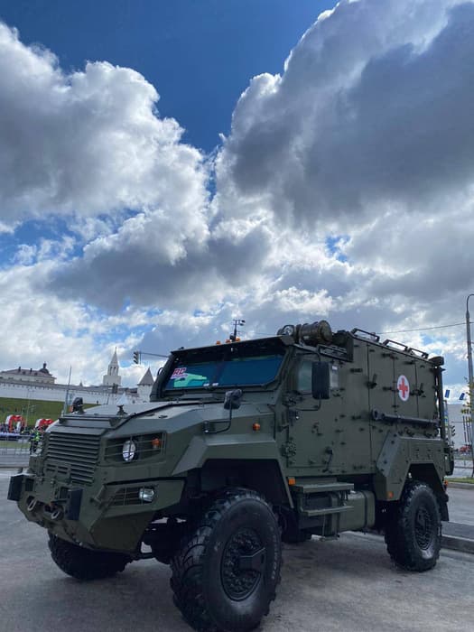 Иногда санитарный автомобиль ездит и без раненых, перевозя медоборудование, чтобы развернуть медпункт для батальона. Под капотом — двигатель КАМАЗ-610.10-350 на 350 л.с., который дает возможность разгоняться до 105 км/ч по необходимости.