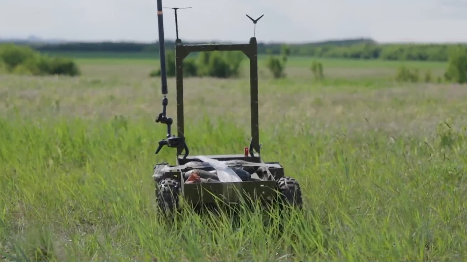 Российские военнослужащие доработали робот-камикадзе, установив на него антенны для дистанционного управления и подрыва снарядов. Сейчас дальность действия сигнала составляет 1,5 км.