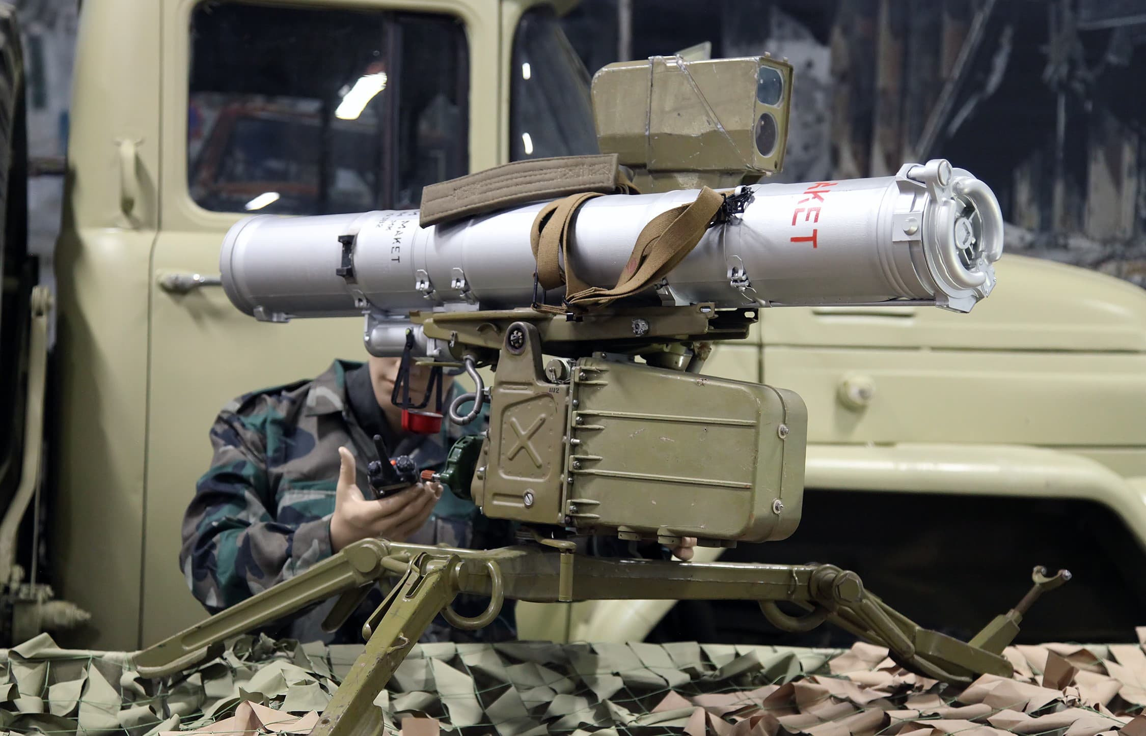 Российские военнослужащие применяют в боевых условиях переносной противотанковый комплекс (ПТРК) «Фагот» разработки «Конструкторского бюро приборостроения» (КБП, входит в холдинг «Высокоточные комплексы»). Орудие предназначено для поражения неподвижных и движущихся со скоростью до 60 км/ч целей, в том числе бронированной техники, укрытий и огневых средств врага.