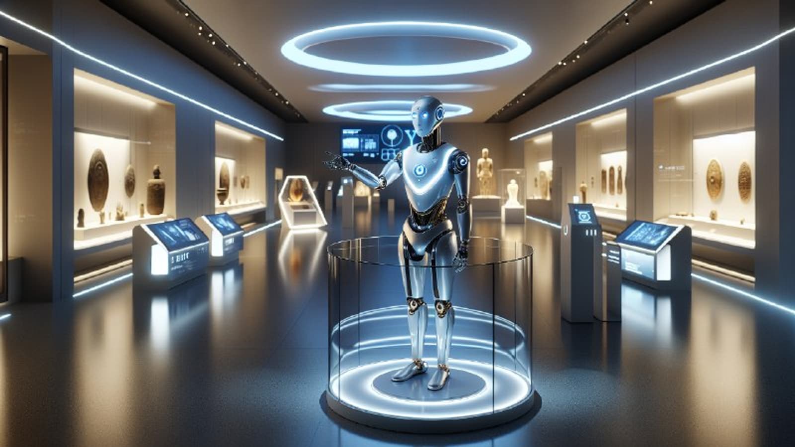 Мобильное приложение выводит интерактивный 3D-образ робота-гида, он рассказывает юным посетителям об экспонатах музея.