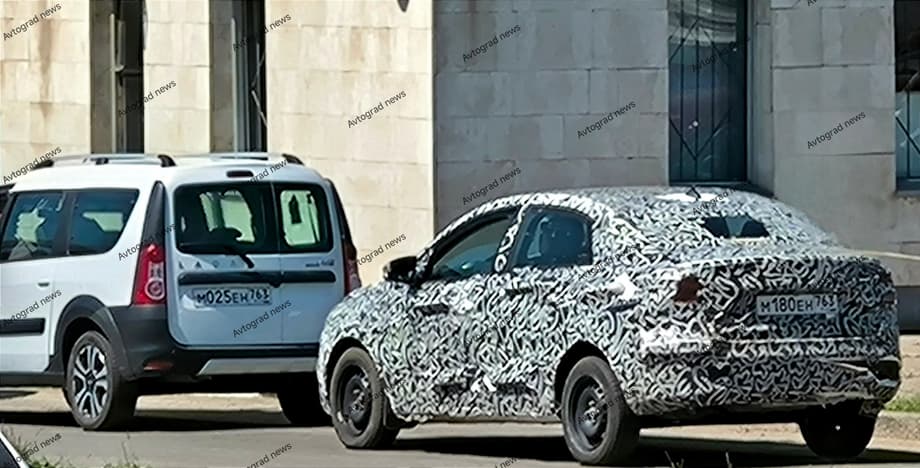Тестовый автомобиль LADA Iskra Sedan, на фоне Largus как-то совсем крошечным смотрится.