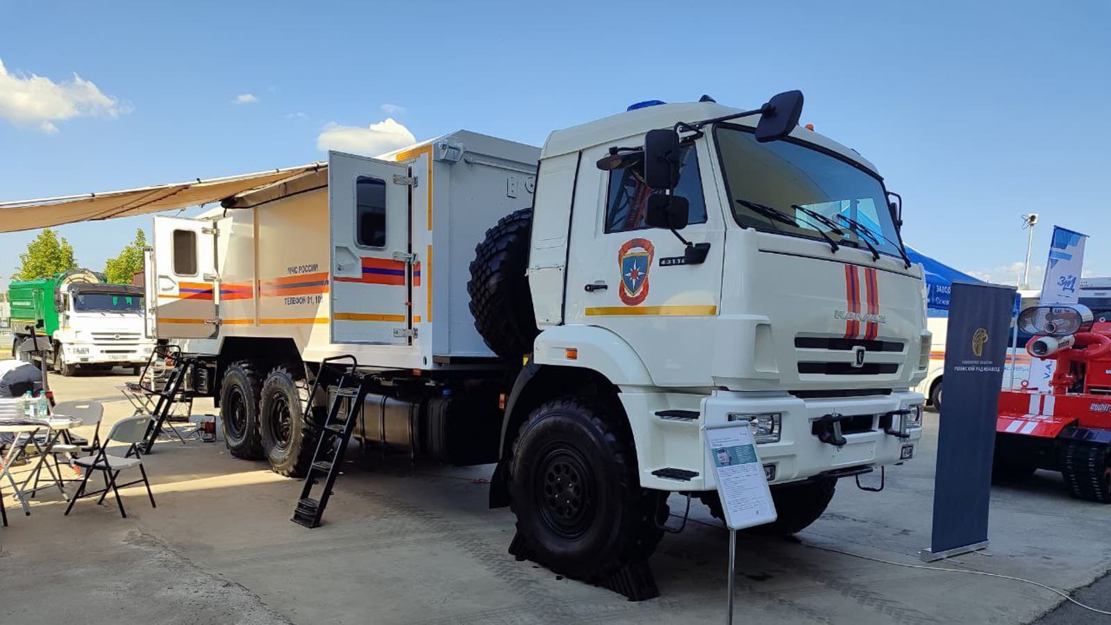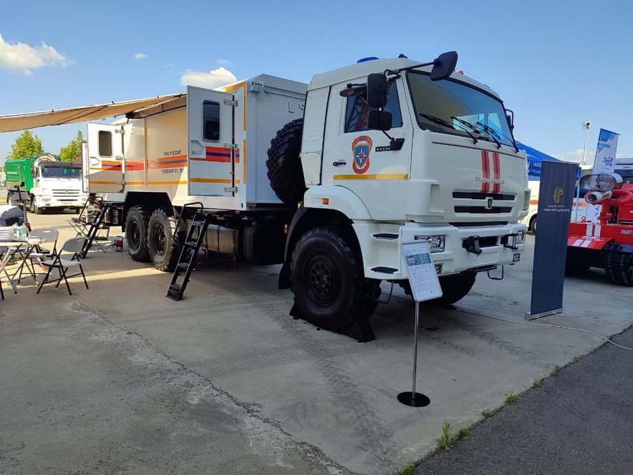 Комплекс создали на базе автомобиля КамАЗ повышенной проходимости, он включает в себя ряд телекоммуникационного оборудования для организации каналов проводной, спутниковой и радиосвязи, видеоконференцсвязи и системы видеонаблюдения. Машина позволяет оперативно развернуть точку для работы с БПЛА в полевых условиях.