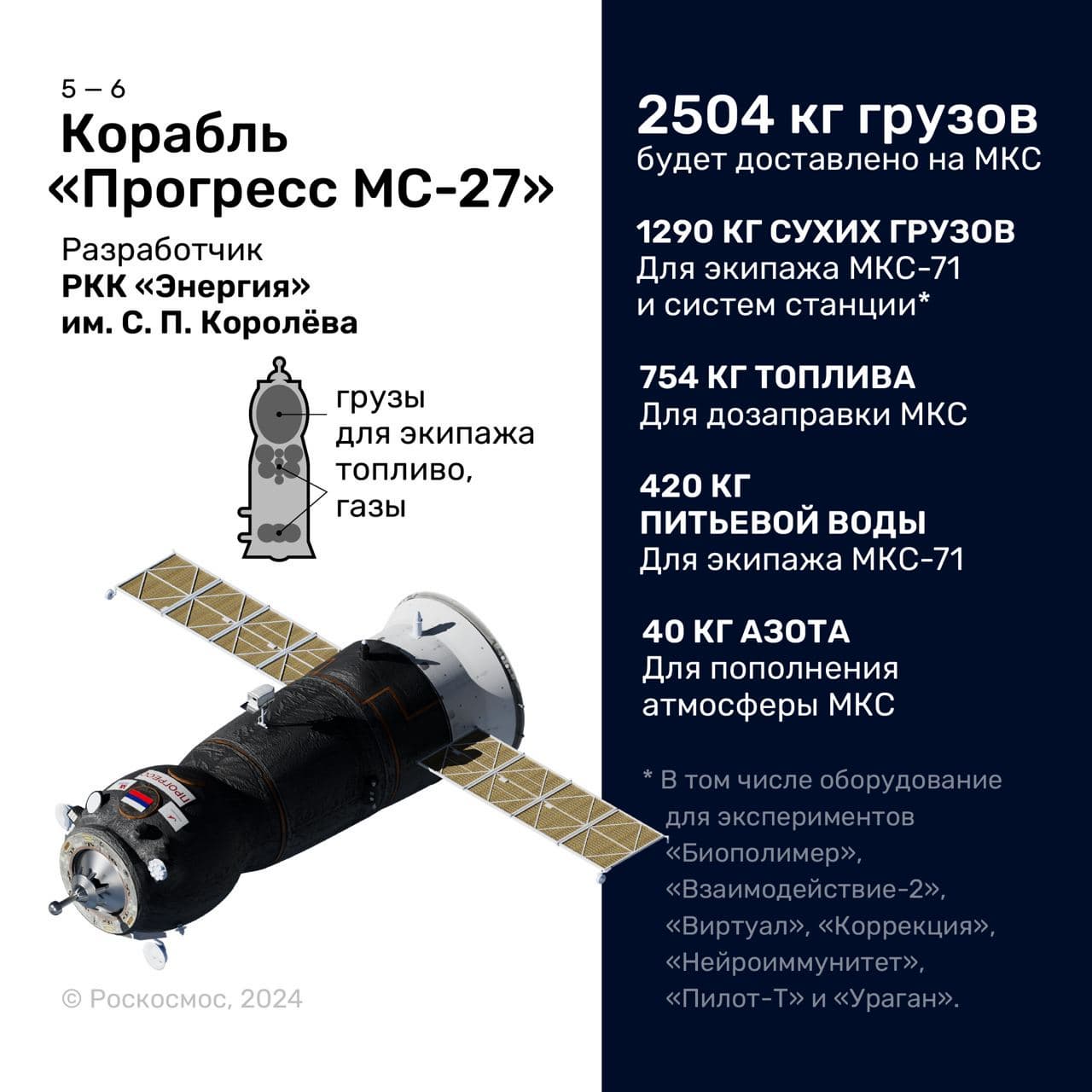 В числе грузов на орбиту доставят также и особые подарки для командира отряда космонавтов «Роскосмоса» Олега Кононенко. 21 июня мировой рекордсмен по числу часов, проведенному в космосе, отпразднует на МКС свой 60-летний юбилей.