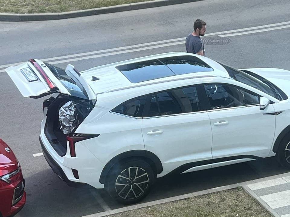 Заснял в Москве на обычной парковке 4,8-метровый кроссовер «Москвич 8». По всей видимости, экземпляр выкатили для рекламных съёмок.