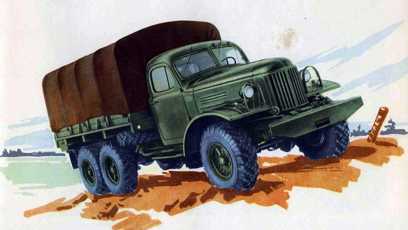 На грузовик ставился шестилитровый двигатель мощностью в 110 лошадиных сил. Привод полный – колёсная формула 6x6.