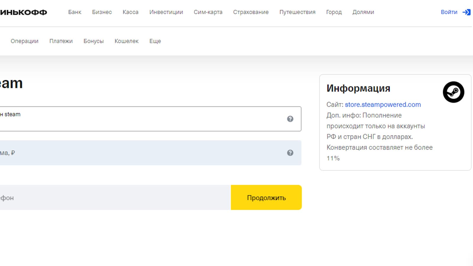 Американский гейм-сервис Steam начал принимать пополнение игрового кошелька через «Тинькофф» у пользователей России и стран СНГ на их аккаунты. Как обнаружили клиенты банка, она принимается и проходит с карт «Мир», Visa и Mastercard.
