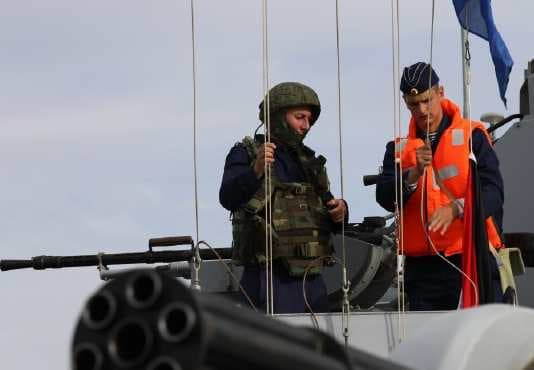 Следующий этапом учений стала защита корабля от морских дронов. Три беспилотных катера были обнаружены в трёх километрах от «Волгодонска». Моряки заняли стрелковые позиции и отработали по целям всеми малокалиберными огневыми средствами: от 30-мм артиллерийских установок АК-306 до автоматов Калашникова и пулемётов. Все учебные цели были поражены.
