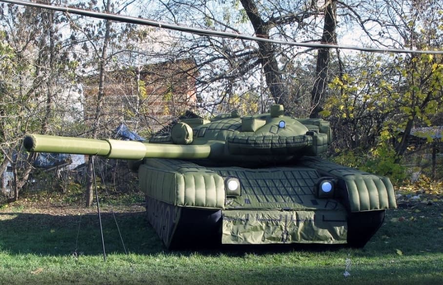 Тяжелая бронетехника на поле боя стала удобной и легкой целью для ударных дронов-камикадзе и высокоточных ракет. Чтобы обмануть разведку противника, и «раскошелить» на запуск дорогостоящих ракет военные начали использовать надувные макеты танков, РСЗО, артиллерии и другого вооружения.