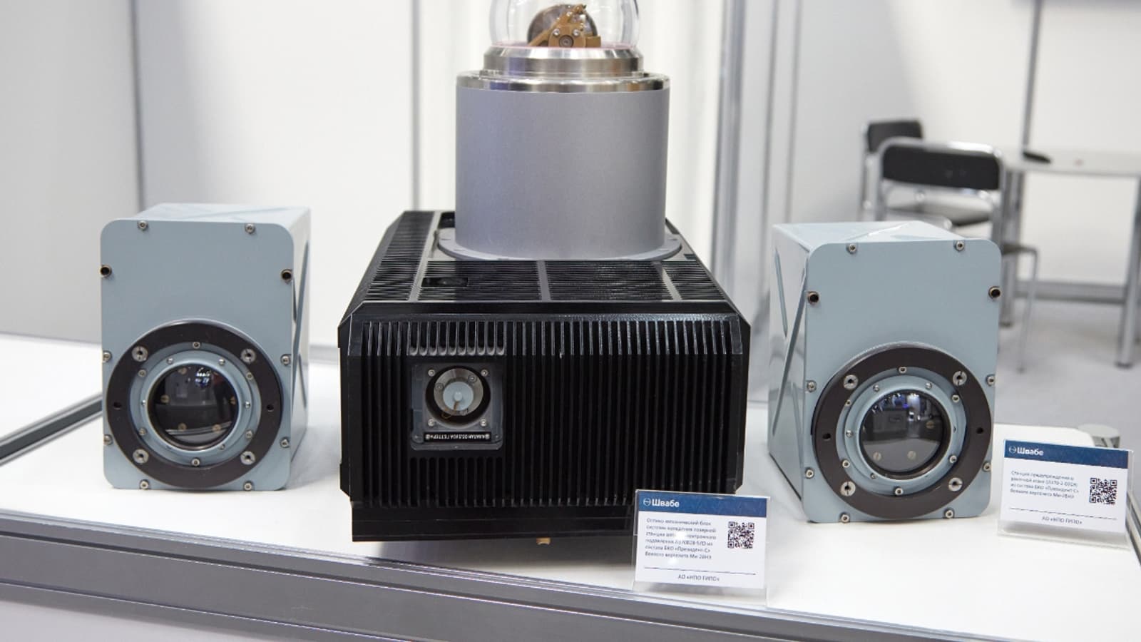 Компания представила два оптико-электронных блока из состава бортового комплекса обороны, в том числе станцию предупреждения о ракетной атаке.
