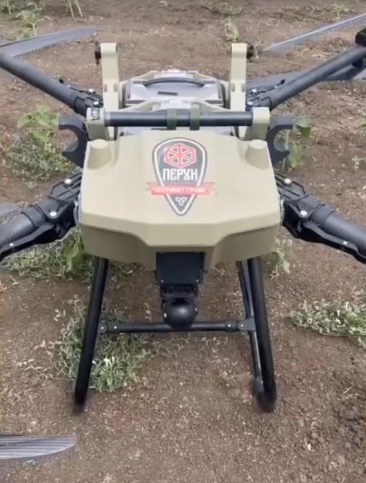 В России создали уникальный ударно-транспортный беспилотный летательный аппарат «Перун». Кадры работы БПЛА опубликовал Telegram-канал @zhivoff.