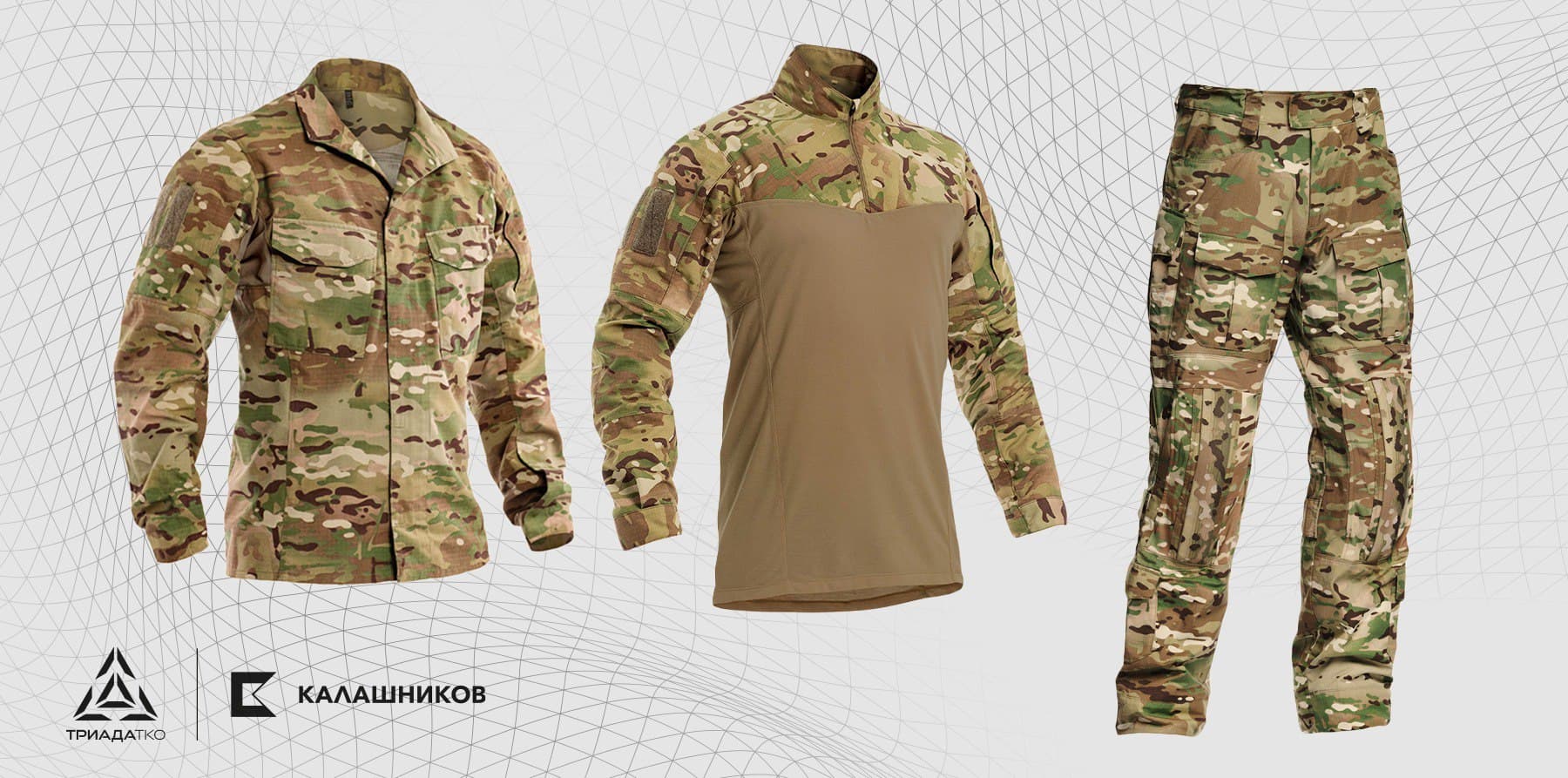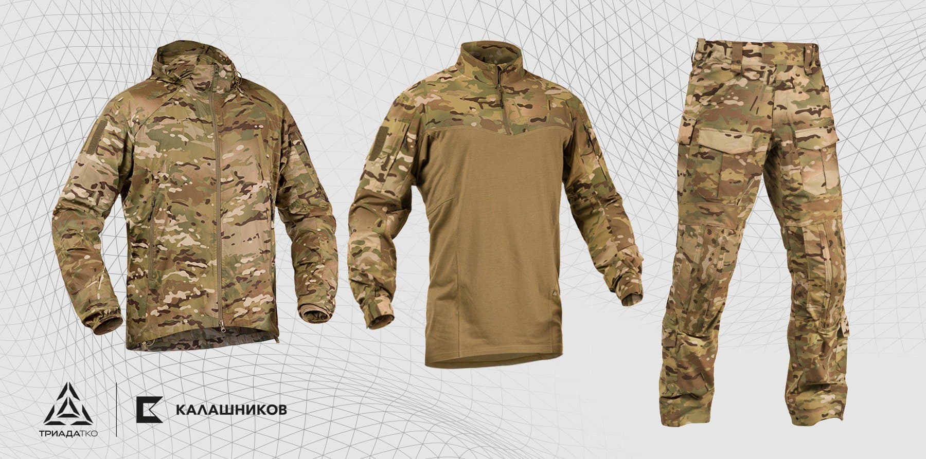 Демисезонный костюм для специальных подразделений от этого поставщика состоит из куртки и брюк L5 2.0 линейки боевой одежды «Триада-ТКО». Его шьют из материала Flex (91% нейлон, 9% спандекс), который обеспечивает защиту от ветра и лёгких осадков, а при намокании быстро сохнет.