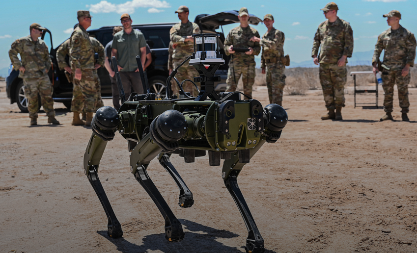 - в США — работы по созданию военных робопсов ведутся с начала двухтысячных годов. По заказу Министерства обороны США компания Boston Dynamics разработала с 2005 года по проекту BigDog два вида бензиновых робопсов. BigDog, а затем и Aplha Dog LS3 предназначались для переноски армейских грузов до 180 кг. Третий робопёс этой программы, Spot, работал на электричестве, но мог поднять всего 18 кг. В конце 2015 года программа BigDog была закрыта, Boston Dynamics сейчас принадлежит Hyundai Motor Group, но роботов Spot можно купить до сих пор по цене более чем в 74 тысячи долларов США за экземпляр. Позже американская Ghost Robotics спроектировала и выпустила своих полуавтономных электрических робопсов Vision 60. Они служат на базе ВВС США Тиндалл в штате Флорида и на базе военно-космических сил на мысе Канаверал в качестве патрульных. Робопсы работают при температуре от – 40 до + 54,4 градусов по Цельсию, оснащены 14 сенсорами, обеспечивающими угол обзора 360 градусов, и могут погрузиться в воду на глубину до полутора метров без вреда для себя. Vision 60 могут использоваться в будущем и для обезвреживания взрывоопасных предметов. Также эта модель робопса, способная работать до 3 часов без подзарядки, комплектуется штурмовыми винтовками, карабинами, автономными винтовками особого назначения. Охранниками американских военных объектов также служат и другие робопсы, DronDogs от Asylon Robotics, которые коннектятся с дроном, парящим в воздухе над вверенной им территорией.