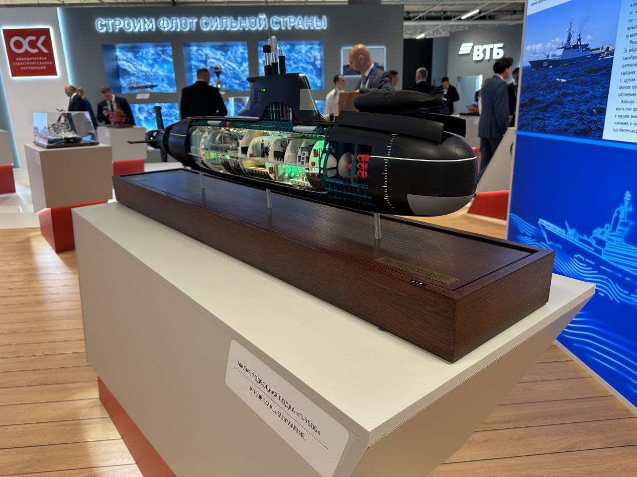 Посетителей экспозиции привлек макет малой подводной лодки прибрежного действия П-750Б «Сервал». Его особенностью являются скрытная транспортировка, высадка диверсионных групп, в том числе с применением сверхмалой субмарины «Тритон-2».